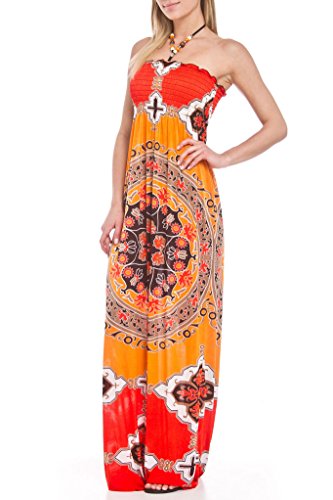 NY Trends Women's Beaded-Halter Printed Maxi Dress, GLD3002, ORN, L