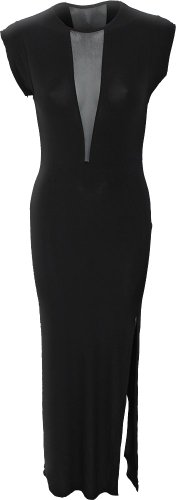 Description : Allure of darkness, inspired by Gothic influence. Deep V MeshSplit Maxi Dress is made of 95% Viscose 5% Elastane, Jersey using skin friendly, Azo-free, Reactive dyes.