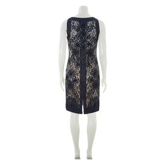 Description : This beautiful occasion dress in blue featuring an embroidered pattern, a rounded neck and a nude coloured underlay. Below the knee. 100% Nylon. Spot clean only.