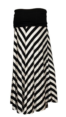 Description : Plus size dress features sleeveless tube dress styling. Maxi length, Slip on design. Can be worn as both skirt or a dress. Diagonal stripe print on bottom and contrasting solid black fabric on bodice. Rayon blend fabric. Available in junior plus size 1XL, 2XL, 3XL.