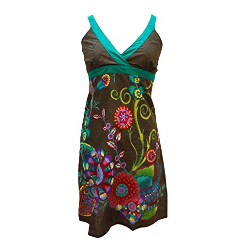 Description : * Pure cotton fabric spaghetti strap smart summer dress. * Color: Dark Taupe with multicolor. * Beautiful floral print in multicolor * Fabric is soft and comfortable to wear. * Suitable as a casual wear, beach wears. * Length: 29 inches (armpit L) , Bust: 30".